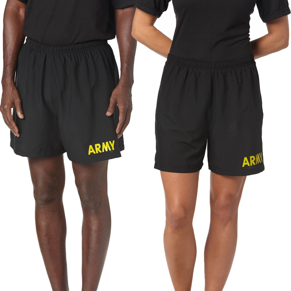 The APFU Unisex Trunks are boxer style with an attached bike short-type liner, identification card patch pocket on the left front thigh of the liner, elastic waist and an inner change and key pocket. Gold letters spelling Army are displayed on the front left thigh. Style: 03982.