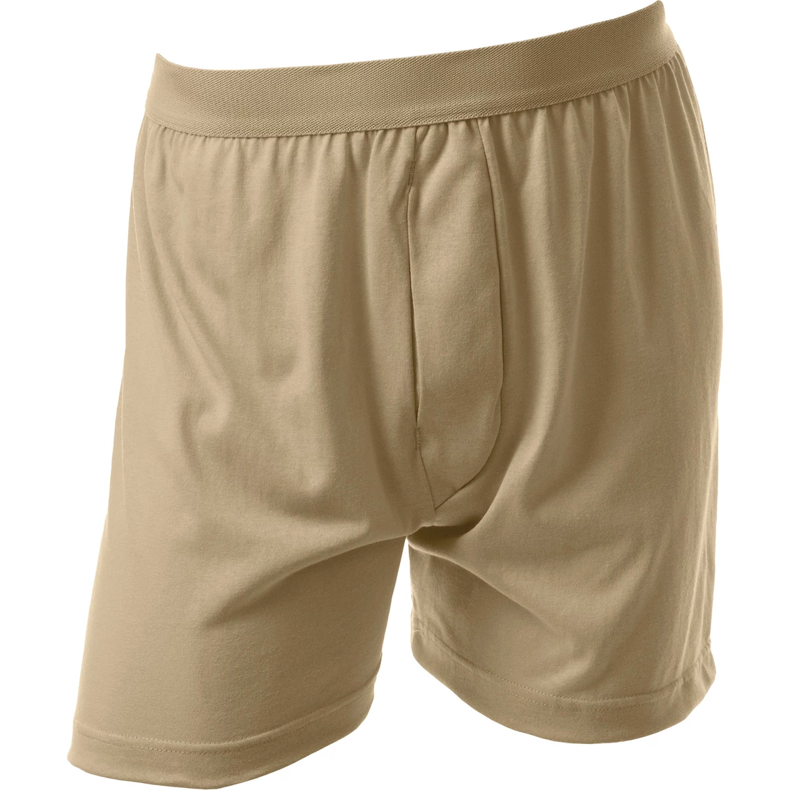 These men’s 50/50 poly/cotton jersey boxer shorts come in a 2-pack. They have a loose fit with fly opening. Color: Tan 499. Style: 665499-2.