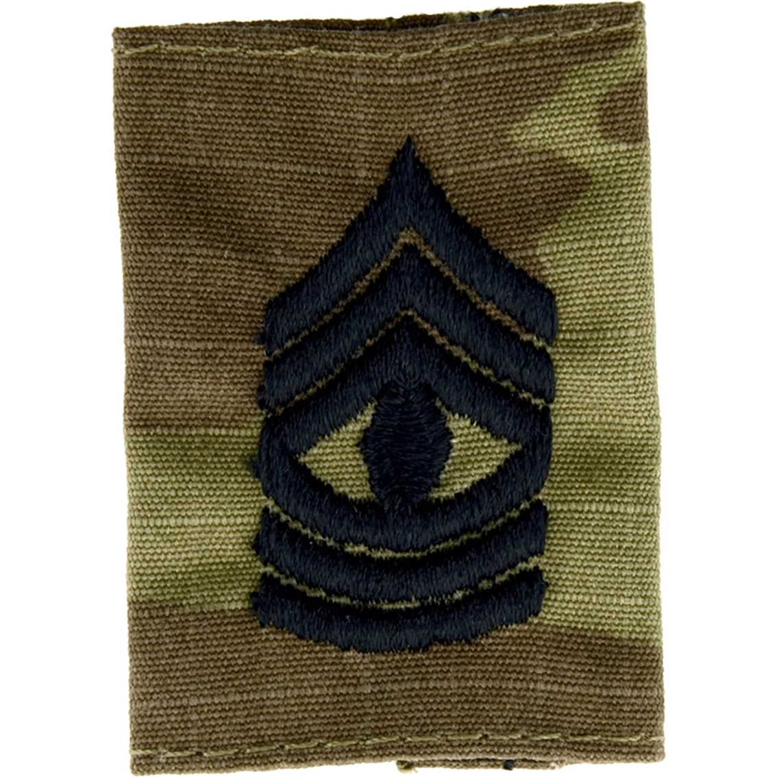 Army Rank First Sergeant (1SG) Gore-Tex (OCP), 2 Qty per pkg. Nametapes, Branch of Service Tapes, Rank, and Occupational Badges have all changed from the 7-color OCP material to a 3-color OCP material for better contrast. This was a change done in 2020 and is the new certified and approved material for Air Force and Army.
