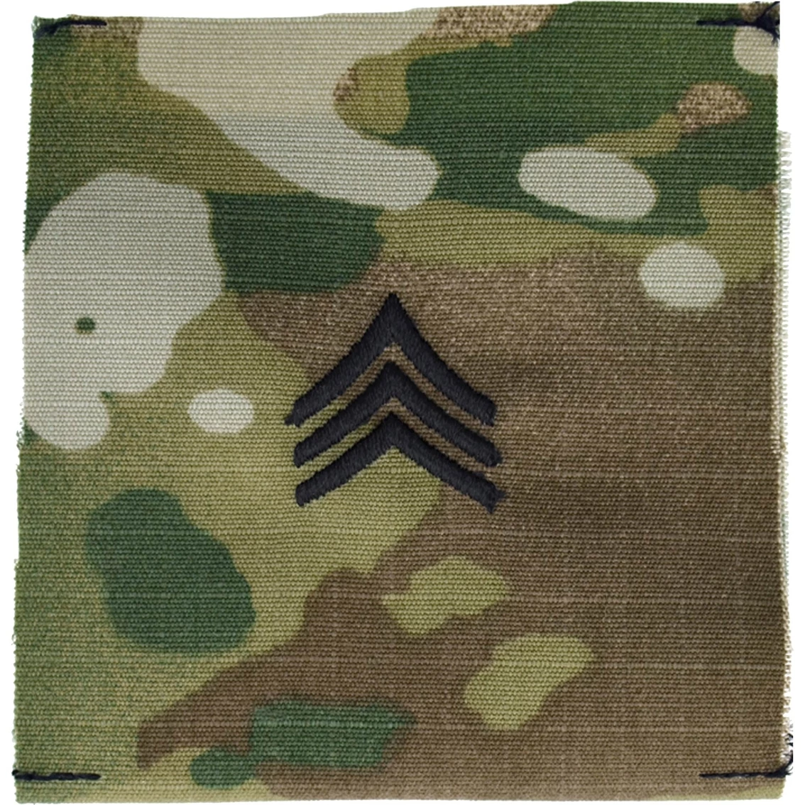 Army Rank Sergeant (SGT) Sew-On (OCP), 2 Qty per pkg. Nametapes, Branch of Service Tapes, Rank, and Occupational Badges have all changed from the 7-color OCP material to a 3-color OCP material for better contrast. This was a change done in 2020 and is the new certified and approved material for Air Force and Army.