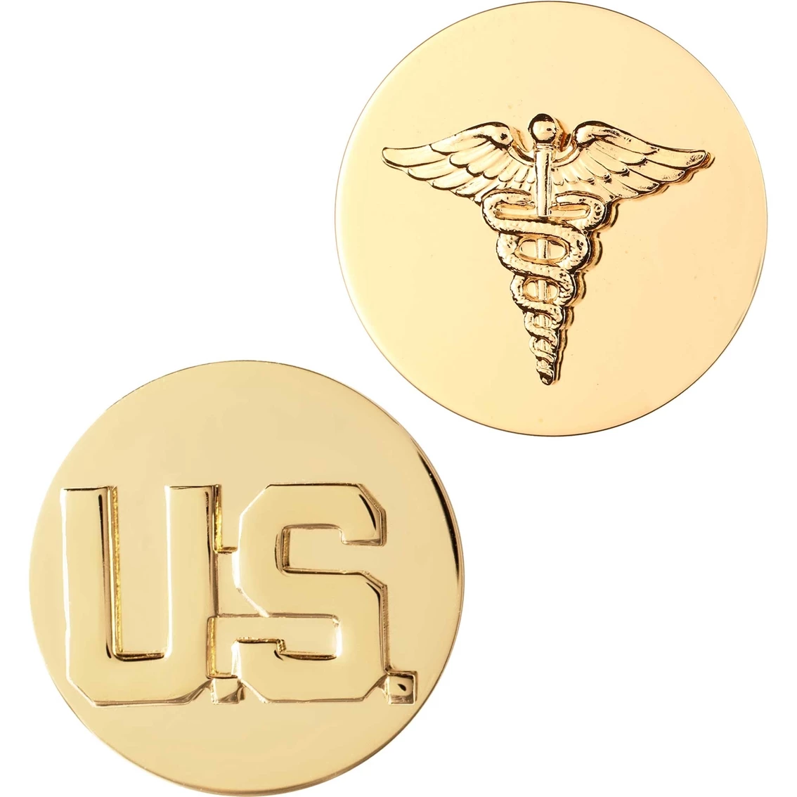 Sta-Brite Army Medical Corp and U.S. Letters Insignia. Metal, pin-on.